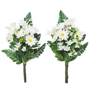 仏花 造花 白いリリーの小花束一対 仏壇用 小さめ お仏壇 お墓用 CT触媒 お盆 お供え btb