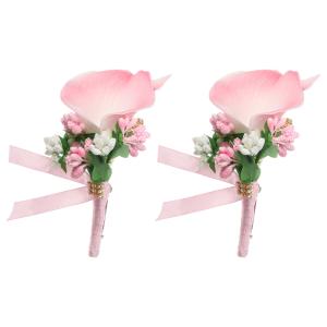 PATIKIL メンズ用カラー・リリー・ブートニア、2個セット、手作りの新郎新婦ブートニア・コサージュ、結婚式、記念日、パーティー、プロム用のピンク