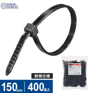 オーム電機 結束バンド ロックタイ 150mm 耐候 黒 400本入 LT-150W400BK