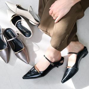 ミュール ゴールドバー オーバルヒール ポインテッドトゥ ストラップ レディース 疲れにくい 歩きやすい amiamiアミアミ