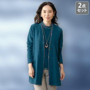 アンサンブル カーディガン レディース おしゃれ 春 秋冬 ミセス シニア ファッション 40代 50代 60代 70代 80代 エレガンスカットソーロングアンサンブル
