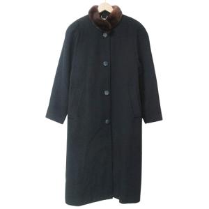 シティ エレガンス City Elegance カシミヤ混 ミンク襟 ロングコート ウール 9AR M相当 黒 ブラック ORG X レディース
