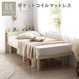 ベッド セミシングル 3ゾーンポケットコイルマットレス付 ナチュラル 宮付き 高さ調整 すのこ ベット