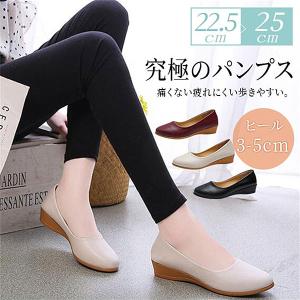 パンプス 痛くな ウェッジソール レディース シューズ ローヒール 美脚 走れる アーモンドトゥ スムース 通勤 甲高 幅広 究極のパンプス