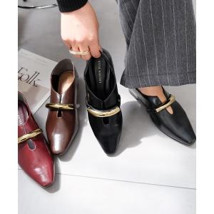 パンプス ソフトスクエア ゴールドモチーフ ローヒール バブーシュ