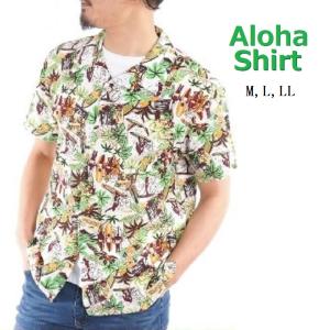【barcedos moderate】 レーヨン ホワイト アロハシャツ M・L・LL ハワイアン ワイキキ プリント 半袖 メンズ