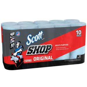 (スコット ショップタオル ブルーロール 55枚×10ロール)柔軟で丈夫な厚めのペーパーウエス 整備や掃除に Scott SHOP TOWELS 1509965