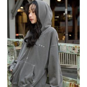 パーカー KANGOL/カンゴール 別注 ロゴ ワンポイント刺繍 ヴィンテージライクオーバーサイズ裏起毛ジップパーカー メンズ レディース