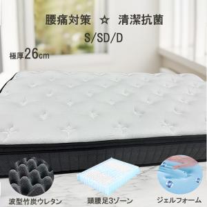 マットレス シングル 厚め26cm 低反発 エッジサポート4Dメッシュ mattress 竹炭ウレタン ポケットコイル 体圧分散 抗菌防臭 通気 腰痛対策 耐久性