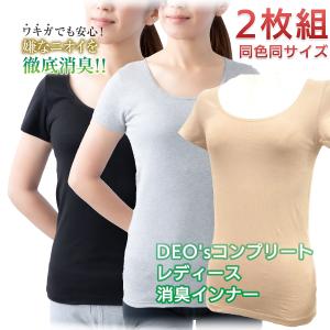 デオス DEO's レディース 消臭インナー 2枚組(同色同サイズ)‐部屋干し臭まで防ぐ ワキガ 消臭 体臭 肌着 加齢臭 Tシャツ デオス ワキガ Tシャツ 汗臭