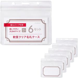 名札ケース 名札ホルダー 大きめ 名刺 サイズ 社員証 id カード イベント用 パスケース 両面 透明 防水 (横型, 6セット)