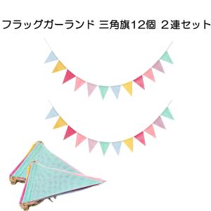 フラッグガーランド 三角旗12個 2連セット 麻布 約4mx2連 計三角旗24枚 キャンプや催し物の装飾に イベント DIY カラフル レインボーカラー LP-DIYGAL12SSET2