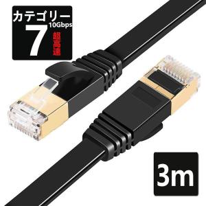 LANケーブル CAT7 3m 10ギガビット 高速光通信対応 ツメ折れ防止 ランケーブル カテゴリー7 薄型フラットケーブル