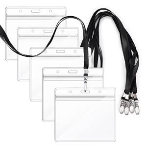 idカードホルダーSegarty ネームホルダー 5枚入れ 横型 黒い 吊り下げ名札 社員証 透明色名札ケース カードホルダー 首掛け 両面用