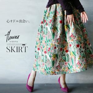 スカート レディース グリーン 春 夏 秋 冬 ロング フレア タック 柄 花柄 ゴム おしゃれ きれいめ モード 心オドル出会い OTONA 40代 50代 60代