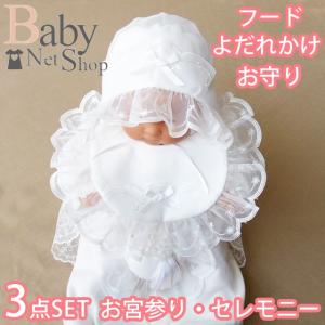 お宮参り用 ベビー用お帽子 よだれかけ お守り 3点セット お食い初め ボンネットフード 赤ちゃん 日本製 出産祝い 出産準備品 新生児