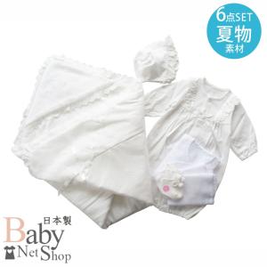 シンプルデザイン 夏物素材 日本製 ベビードレス ベビーアフガン付き6点セット 新生児赤ちゃん 出産準備品 おくるみ 短肌着 ベビーソックス