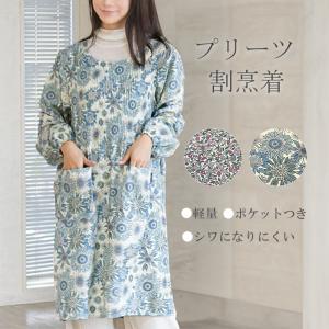 ワンピース風 プリーツ 割烹着 エプロン かっぽう着 花柄 保育士 おしゃれ かぶるだけ ロング丈 家事 料理教室 母の日 敬老の日 プレゼント シワにならない