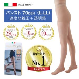 段階式着圧 着圧 ストッキング パンスト レディース むくみ 公式 メディカルステイフィット パンスト70デニール L-LL ヌーディーベージュ