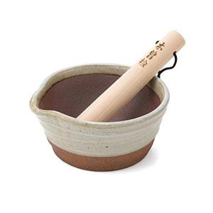 萬古焼 溝のないすり鉢 (半白) 小 国産すりこ木付き