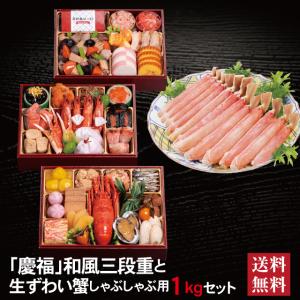 おせち 2026 生ずわい蟹 セット 「慶福」 冷蔵 三段重 全35品 3人前 4人前 「生ずわい蟹」 冷凍 しゃぶしゃぶ用1kg 送料無料 千賀屋
