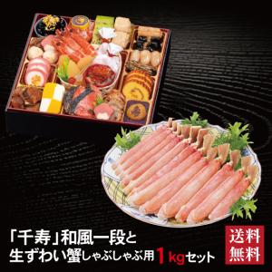 おせち 2026 生ずわい蟹 セット 「千寿」 冷蔵 8.5寸 一段 全25品 2〜3人前 「生ずわい蟹」 冷凍 しゃぶしゃぶ用1kg 送料無料 千賀屋