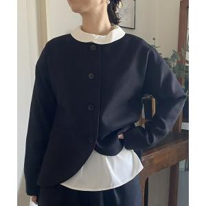 ジャケット ノーカラージャケット quaranciel:「手洗い可能」ノーカラー ポケット ニット ジャケット レディース