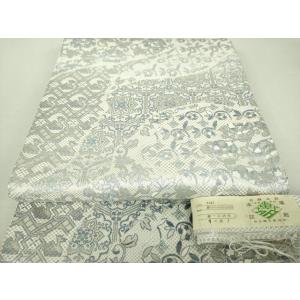 平和屋着物●本場筑前博多織 六通柄京袋帯 藍 名物裂花文 笹蔓緞子 銀糸 証紙付き 正絹 逸品 DAAQ3070ps