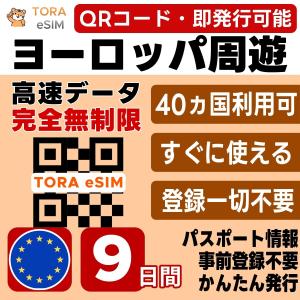 ヨーロッパ周遊 eSIM | 9日間 | 無制限 | 即日発行 日本で設定OK | フランス,イギリス,イタリア,ドイツ,スペイン,スイス,オランダ,トルコ含む欧州40カ国 SIM