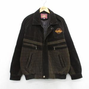 XL/古着 長袖 ジャケット メンズ HAPPY 大きいサイズ 茶他 チェック 内側キルティング 26jan27