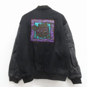 XL/古着 長袖 スタジャン メンズ PLANET 刺繍 袖レザー 大きいサイズ 黒 spe 26jan24