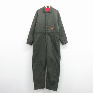 W42/古着 長袖 ツナギ メンズ 90年代 90s 大きいサイズ USA製 タロン 濃緑 内側キルティング 26jan24