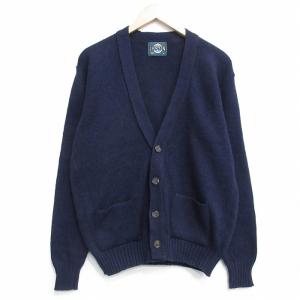 L/古着 ジャンセン 長袖 ニット カーディガン メンズ 90年代 90s 無地 USA製 紺 26jan28