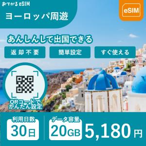海外旅行ヨーロッパ41か国で使える【ヨーロッパ周遊】30日間利用可能eSIM20GB 海外旅行ヨーロッパ41か国で使える【ヨーロッパ周遊】30日間利用可能eSIM20GB5,180円 送料無料