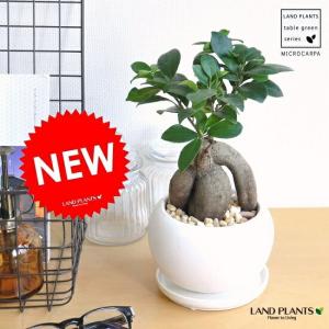 がじゅまる (幹太タイプ) 白色 大丸 陶器鉢 多幸の樹【黄色小石・受皿・育て方】 陶器鉢・鉢・鉢植え・丸鉢・ホワイト ガジュマル・がじまる