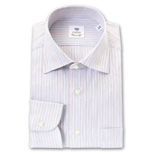 CHOYA Classic Style 長袖 ワイシャツ メンズ 綿100% クラスターストライプ ワイドカラー ホワイト ブルー ブラウン