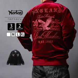 Norton ノートン メンズ ライトアウター ブルゾン イーグル 刺繍 ベロアスカジャン ベルベット 袖刺繍 同一トーン 大人カジュアル アメカジ 261N1601B