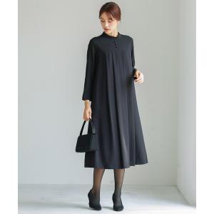 ワンピース 「洗濯機で洗える」「喪服 WEB限定」小柄さんから妊婦さんまで着用できるブラックフォーマルヨーク切り替えタックフレアーワンピース