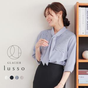 トップス ブラウス ボウタイブラウス 花柄レース フロントボタン 比翼仕立て ブロークンツイル素材 レディース Honeys ハニーズ 6分袖レース使いブラウス