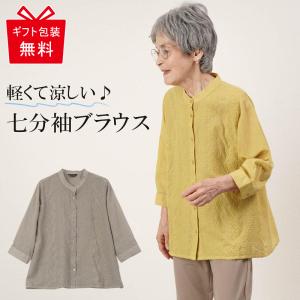 シニアファッション 80代 70代 60代 高齢者 婦人服 ブラウス レディース シニア 服 女性 おばあちゃん 上品 プレゼント 綿100% 花刺繍バンドカラー七分袖 誕生日