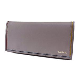 ポールスミス 長財布 メンズ ブランド Paul Smith ブライトストライプカラーライン フラップ 専用箱付 ライトグレー 本革 BPS076