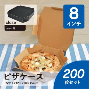 ピザ ケース 8インチ 黒 ピザ箱 デリバリー ピザボックス テイクアウト ピザ 宅配 直径20cm 対応 200枚 ブラック 段ボール 業務用 ダンボール ワン サイズ