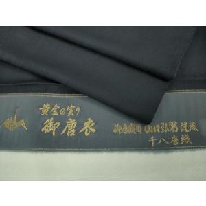 平和屋本店■極上 皇室伊勢神宮御用 山口美術織物 山口弘躬 お召 色無地 千八唐織 御唐衣 黄金の実り 藍鉄色地 反端付き 逸品 DZAA4074kh5