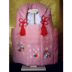 雛まつり用品☆ひなまつり用被布着(ひふぎ)シシュー入り鹿の子風 白木飾り台付☆1歳くらいのお子様が着られるサイズ(幅約38cmx高さ約45cm)