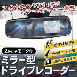 バックミラー一体型 ドラレコ 2.8型液晶 本体 エンジン連動 動体検知 万が一の瞬間をしっかり録画&保存 視界を遮らない 安 ミラー型ドライブレコーダー