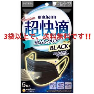 3袋以上で送料無料 ユニチャーム 超快適マスク ブラック 息ムレクリアタイプ ふつう 5枚