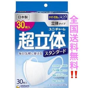 2箱以上、送料無料。沖縄,離島は別途送料がかかります。) 超立体マスク スタンダードふつうサイズ30枚入unicharm ユニチャーム 1個