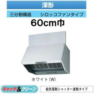 ★VFR-64LJDB(W) 日本キヤリア 台所用換気扇 レンジフードファン 深形 電動給気シャッター連動タイプ 60cm巾 三分割構造 シロッコファン BLIV型 ホワイト