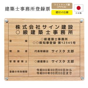 建築士事務所登録票 デザインパターン ライトウッド調 看板 設計事務所 建築士登録票 建築事務所登録票 おしゃれ ウッド ヴィンテージ|デザイン:F001