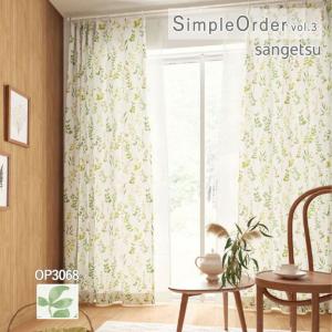 オーダーカーテン サンゲツ ワンプライスカーテン SimpleOrder vol.3 ドレープカーテン 水彩リーフ OP3068 ウォッシャブル ポリエステル100%